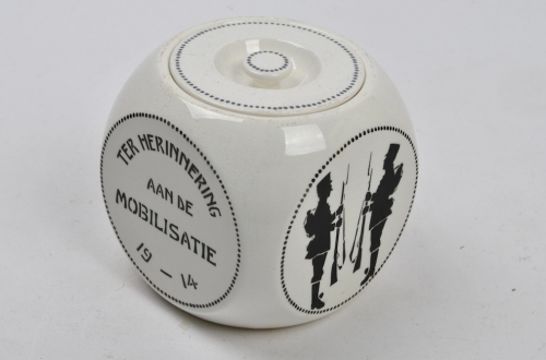 Titel | Tabakspot in de vorm van een kubus ter herinnering aan de mobilisatie 1914 |